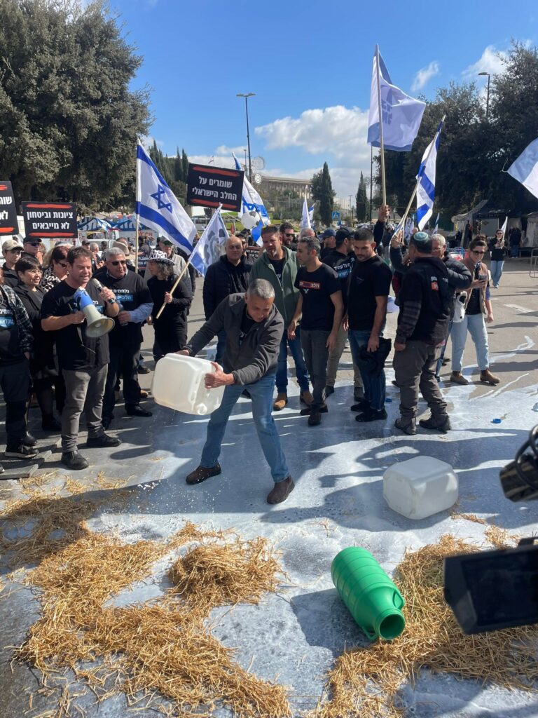 מחאת הרפתנים מחוץ לכנסת ביום ד' האחרון. החלטות הרות גורל לפרנסה שלהם | צילום: מאבק הרפתנים והחקלאים