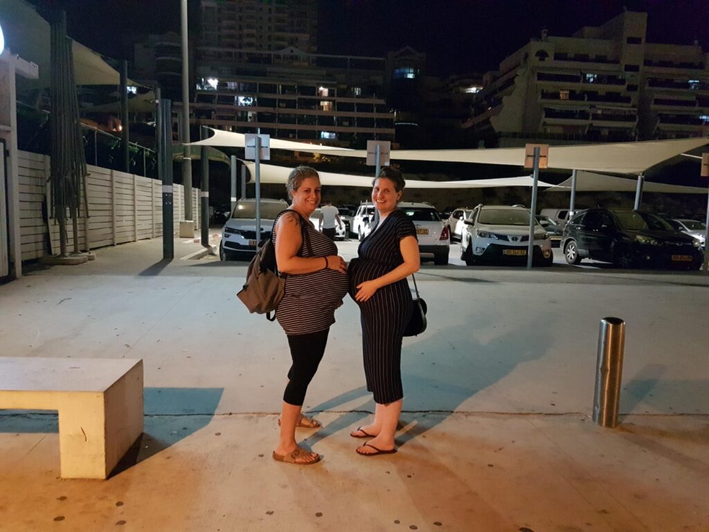 רם אהרון כבר הכירה את ביבס, שעד 2018 היתה סילברמן. בכל זאת, קיבוץ קטן. אבל הפרידו ביניהן 12 שנה ("אפילו עשיתי לה בייביסיטר באיזה פורים של הקיבוץ") והערב בו הגיעה עם לב פצוע לפאב ופגשה בחיוך שחיטא וחבש אותו, הפך אותן לחברות טובות. "הייתי הרבה שנים בחינוך והיא התחילה ללמוד חינוך והיינו נוסעות להשתלמויות ביחד. אני ניהלתי את החינוך בכרם שלום ושכנעתי אותה לעבוד שם כמדריכה וזה היה תענוג, היינו חברות מאוד טובות ונכנסנו להיריון ממש באותו הזמן. העברנו את ההיריון צמוד-צמוד".