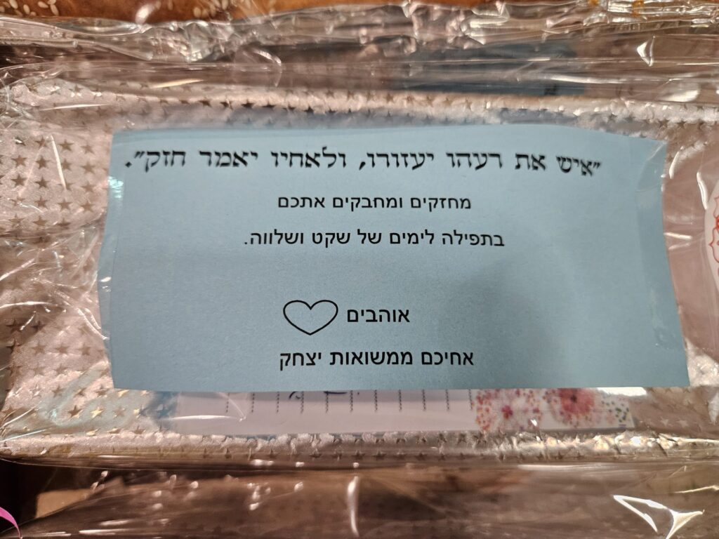 "המשלוחים המושקעים של מעברות, משמר השרון, גבעת חיים מאוחד, המעפיל וגבעת חיים איחוד, הגיעו עם רועי מרגלית למטולה, מנרה, מרגליות, משגב עם, ושני מוצבים צבאיים" נמסר בקבוצת המתנדבים.