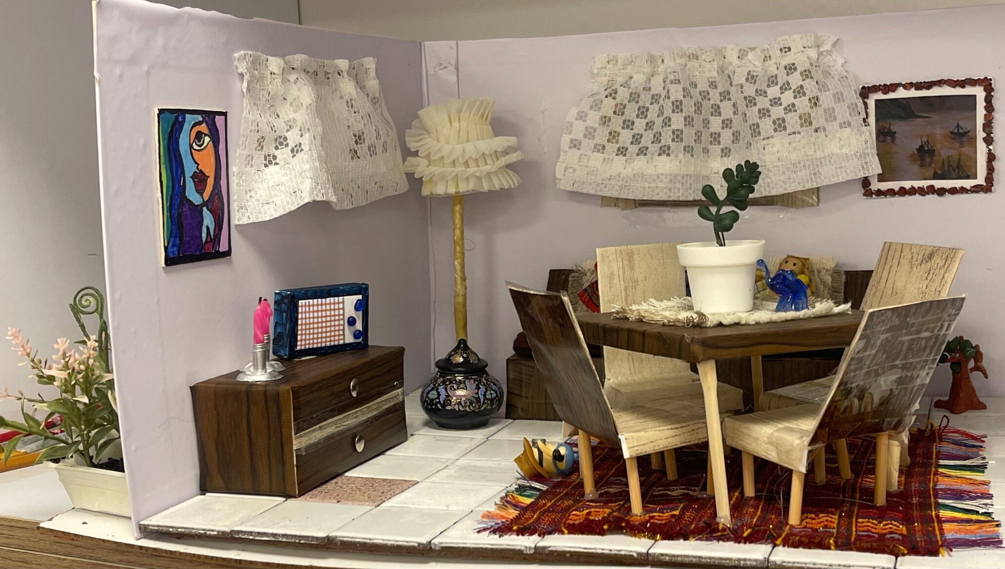 מתוך הכמיהה הזו היא יצרה דגם מיניאטורי של פינת חמד חמה ונעימה, המסמלת את הבית כמרחב של נחמה, חיבור ותקווה.