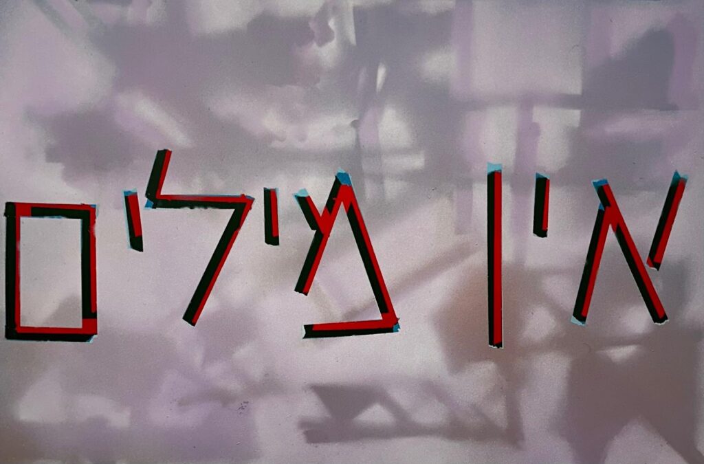בשני ציורים נוספים משלו מ-2025, הוא כותב, בהתאמה, באותיות דפוס, את המילה "אין", ואת המשפט האילם: "אין מילים". שני הציורים הללו מבטאים בצורה הצרופה ביותר את העובדה, שלנוכח הטראומה אתה נותר ללא מילים.