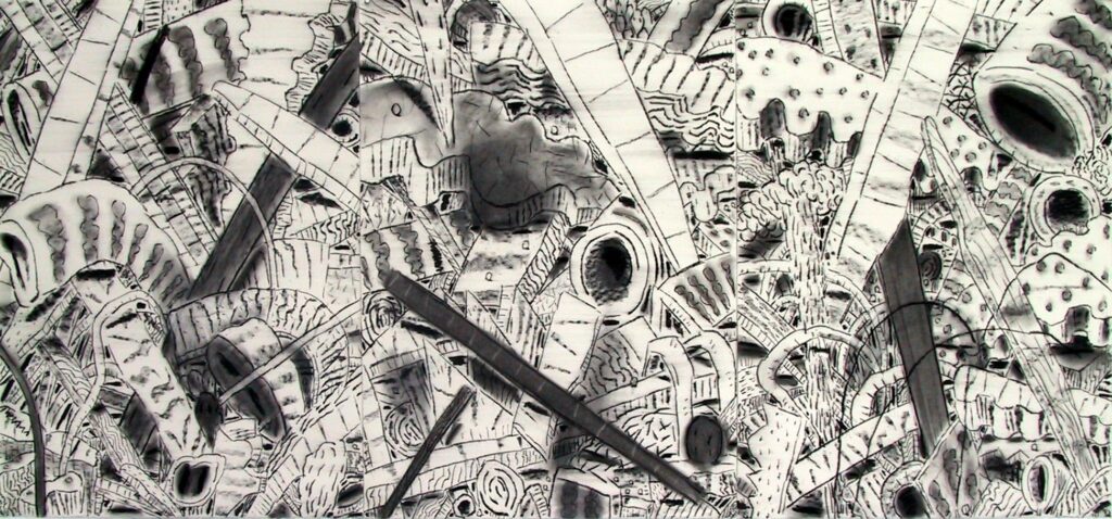 מתוך רישומי סדרת "ערמות" של לארי אברמסון. תחושת כאוס