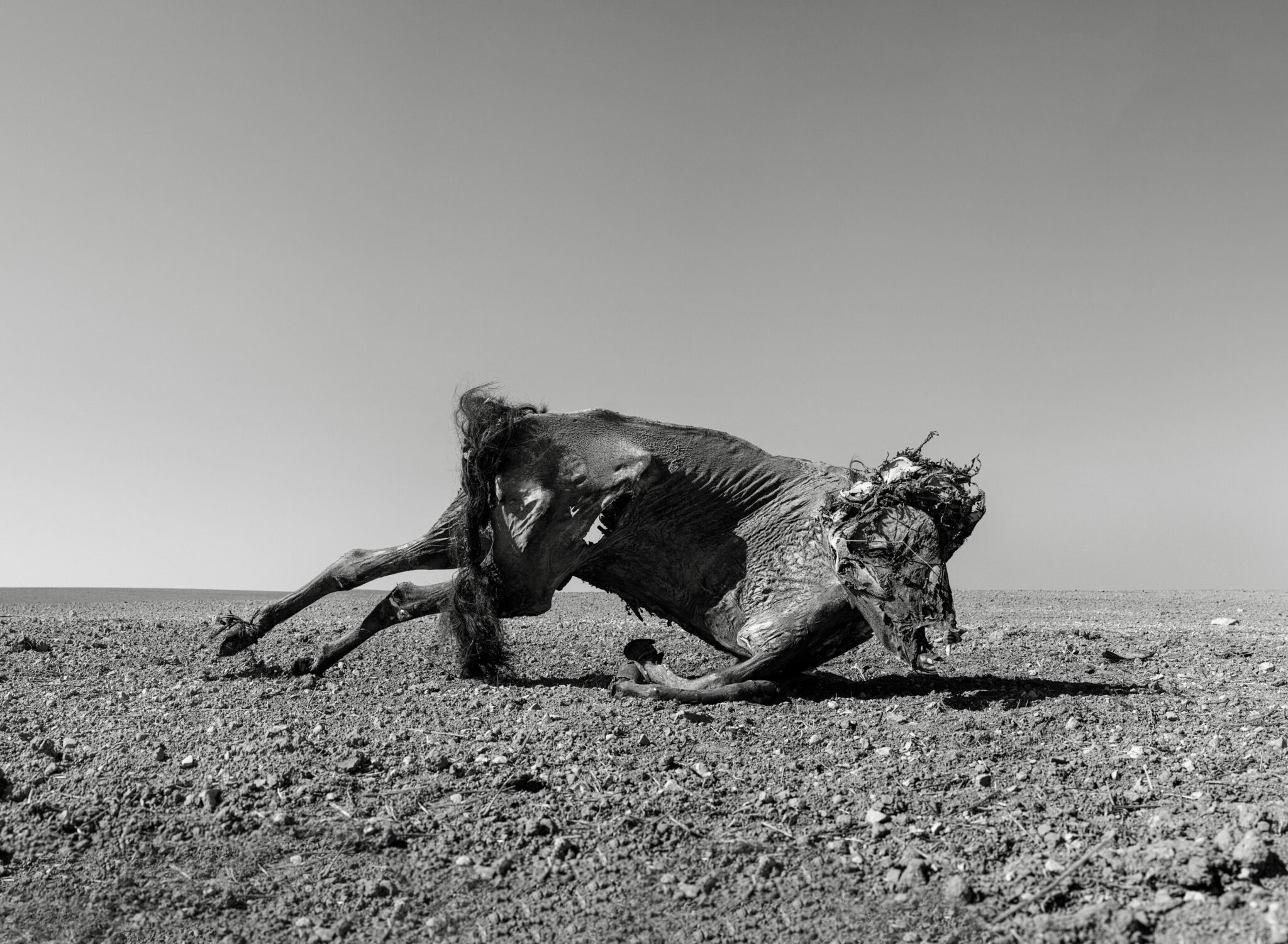 תצלום נוסף של מטלון, הלוכד באופן מוחשי ואפקטיבי את המוות, מציב פרדוקס בו נראה פגר של סוס ברגע המכריע של קריסתו.