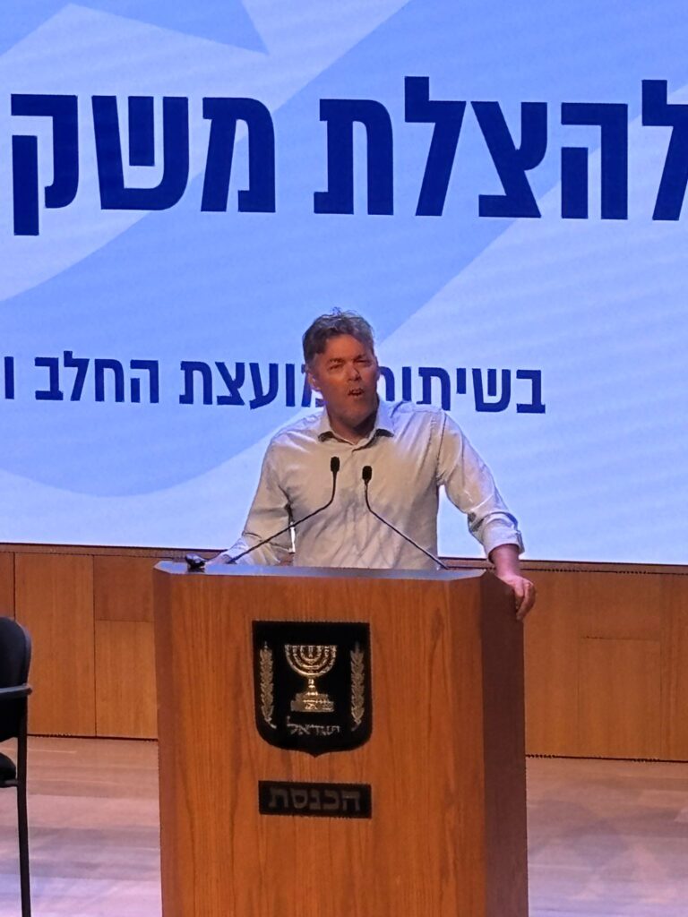 ליאור שמחה, מזכ"ל התנועה הקיבוצית, סיפר על כך שהטלפון הראשון שקיבל בבוקר 7 באוקטובר בישר לו על פגיעה ברפתות העוטף. שמחה הציג עליה של 30% בייצור החלב ברפתות העוטף בהשוואה ל-6 באוקטובר. "אנחנו נאבקים על השיקום ומקבלים מהאוצר את הרפורמה הזו".
