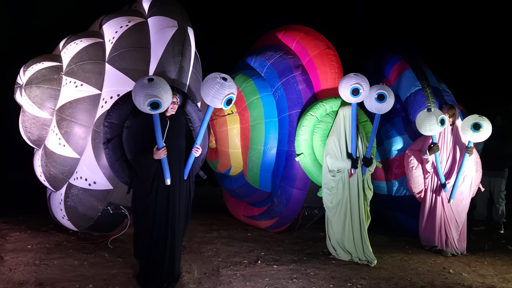 מסע מרגש של כלי רכב נע דרך שדות מוארים במיצגי ענק לחנוכה, בשטחים החקלאיים שבין קיבוץ צאלים ועד למצפה גבולות