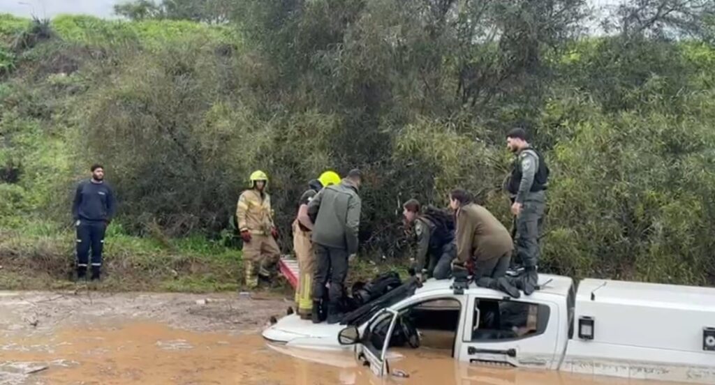 צוותי כיבוי והצלה מתחנת עפולה פעלו לחילוץ ארבעה לכודים מרכב שטח ששקע בנחל סמוך למגידו