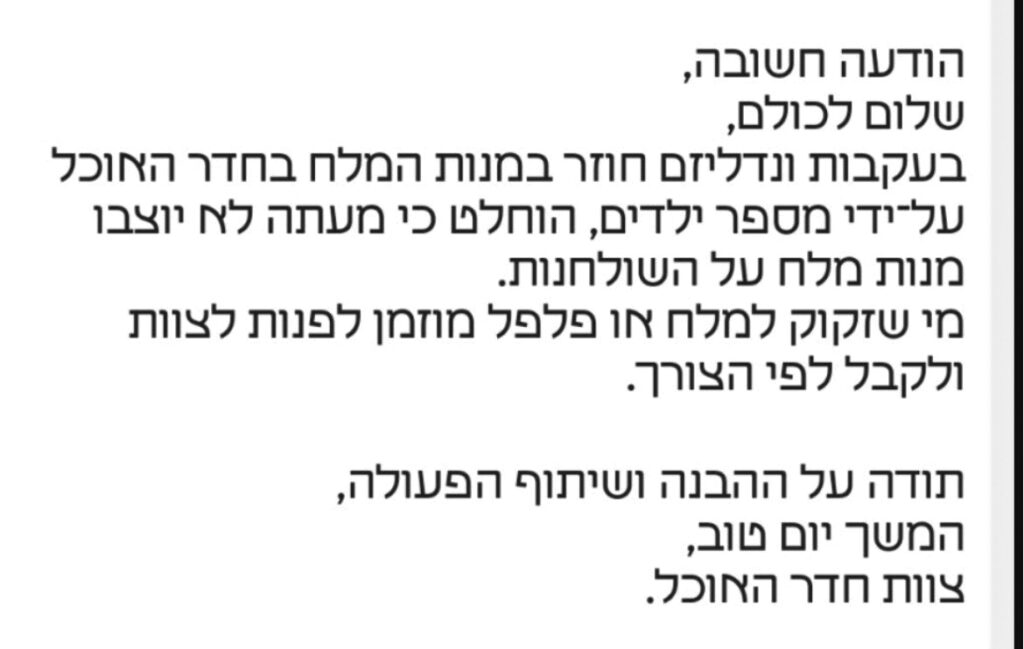 בבית קשת אין מים, במעין צבי אין חשמל, בקבוצת יבנה אין יותר אוכל בחינם ובשדות ים אין מלח. העיקר שבבארות יצחק יש גיוזה. וגם המבורגר