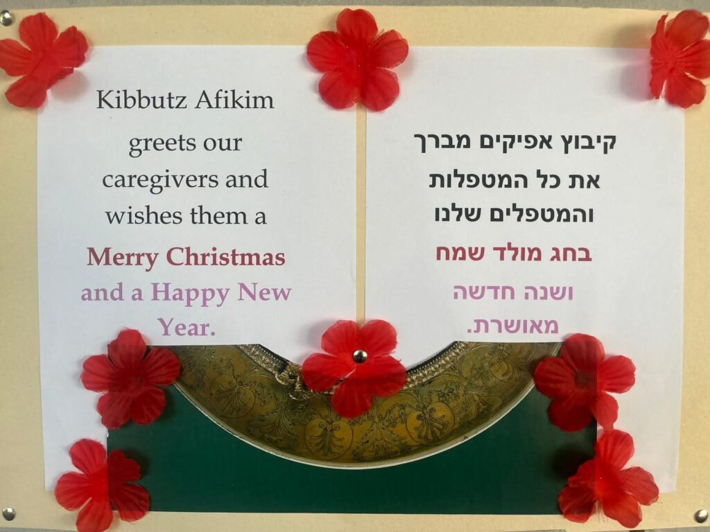 בקיבוץ אפיקים לא שוכחים להודות לעובדים הזרים שחוגגים הרחק מבתיהם. בכל שנה מכינה עתליה הלמן ברכה לחג המולד ותולה על לוח המודעות.