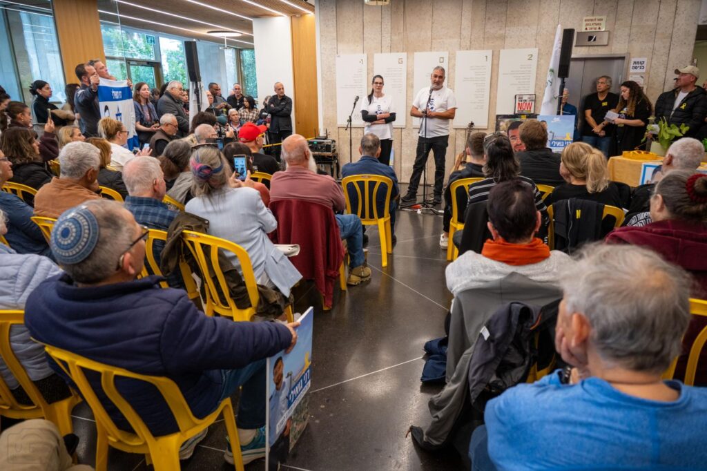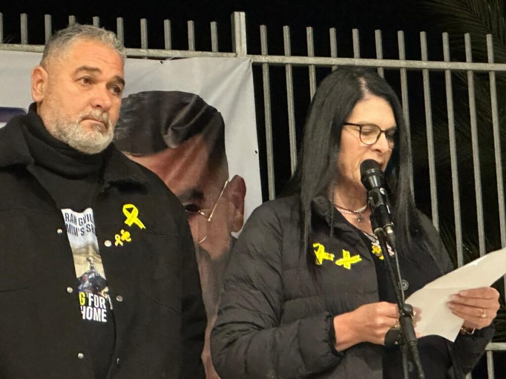הוריו של רן גואילי בעצרת במיתר. "המשיכו לעשות הכול כדי להגיע לרן" | צילום: מטה משפחות החטופים