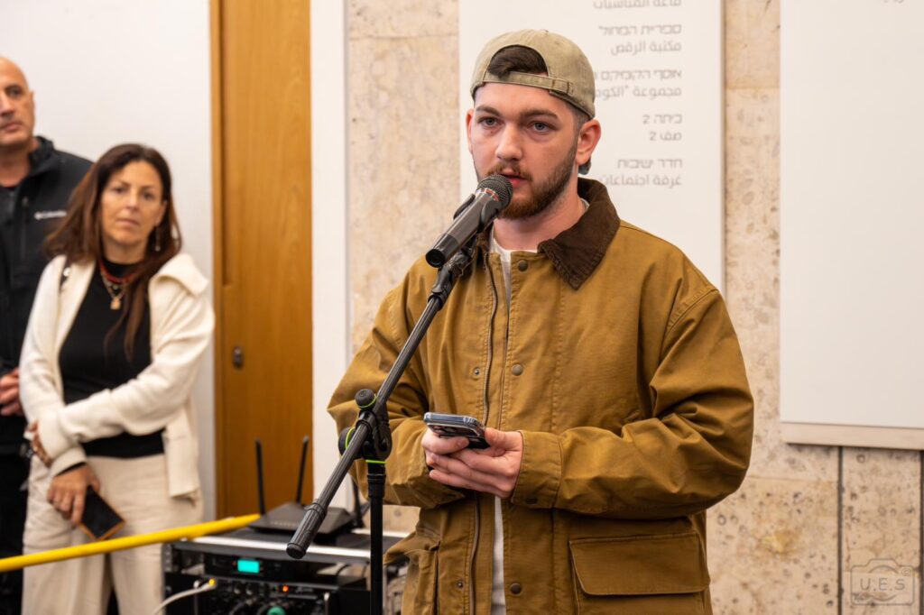 בר קופרשטיין שנחטף ממסיבת הנובה והוחזר מהשבי בהסכם האחרון, ההסכם בו נכלל גם רן גואילי, פנה אל הקהל אשר הצטופף ברחבת הספריה: