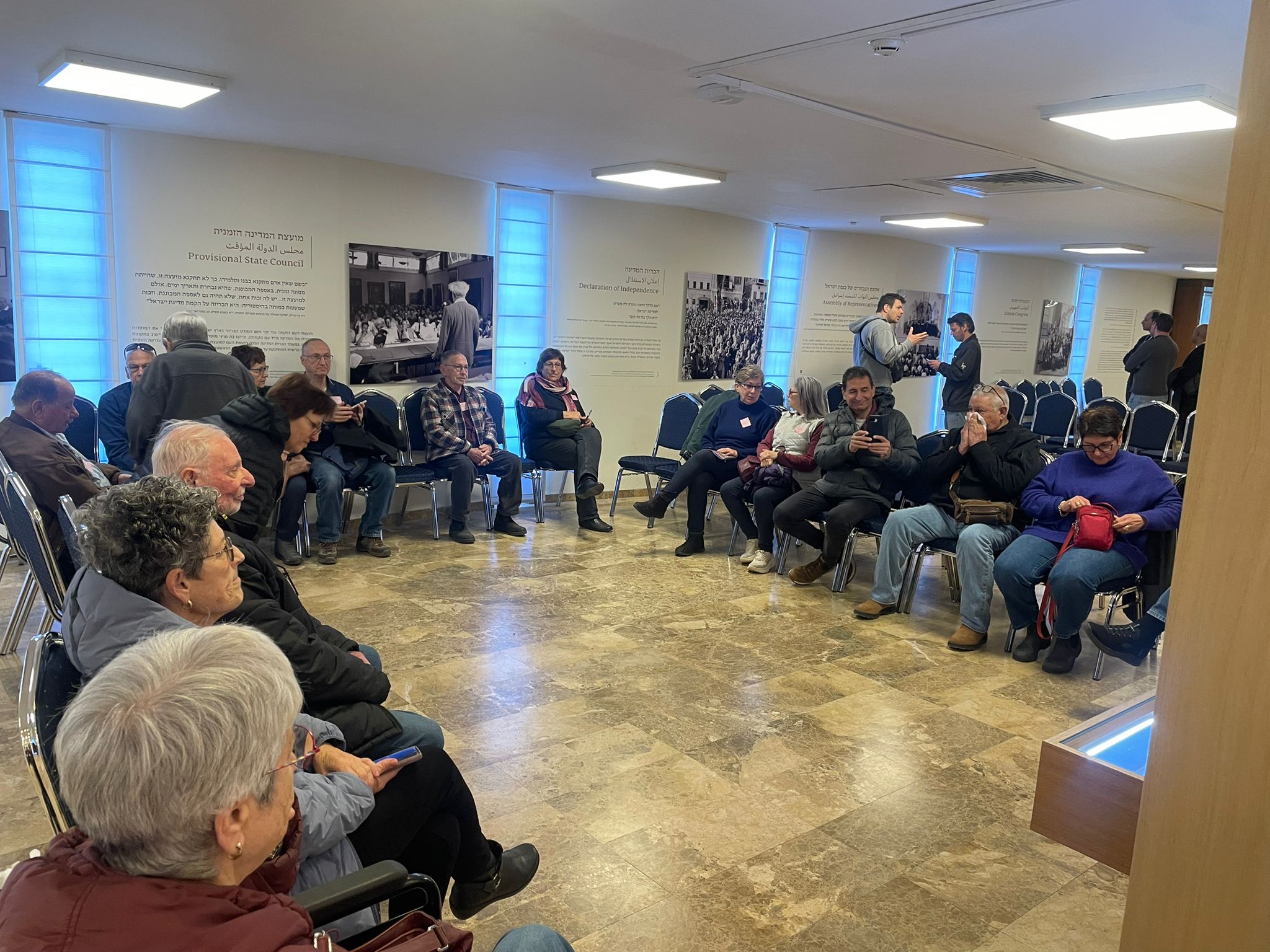 ח"כ אלון שוסטר (כחול לבן) מקיבוץ מפלסים אירח את חברי הקיבוץ בוועדה לביקורת המדינה והסביר על פעילות הוועדה ועל הנושאים בהם הוועדה דנה. במסדרון פגשו הוותיקים את ח"כ עאידה תומא סלימאן (חד"ש). "זכינו להדרכה מעולה על הפעילות הפרלמנטרית במשכן הכנסת, כאשר מי שליוותה אותנו היתה איילת יונגרמן-סלע (קיבוץ אייל), שהיא האחראית על קשרי ממשל בין התנועה הקיבוצית לגורמי הממשל השונים".
