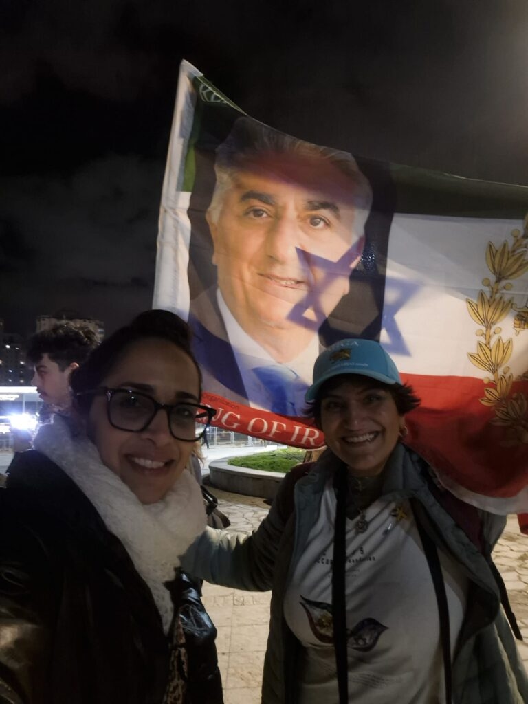 אתמול בהפגנה עם סבה קוי (מימין). חברה וכתבת של manoto, אחד מאתרי התקשורת הבינלאומיים הגדולים של האופוזיציה האיראנית | צילום סלפי