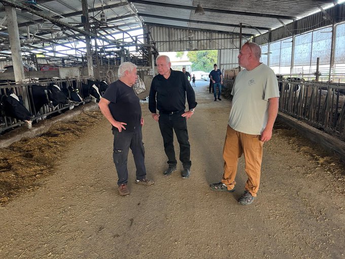 שר החקלאות וביטחון המזון אבי דיכטר ברפת בבית שערים | צילום: דוברות משרד החקלאות וביטחון המזון