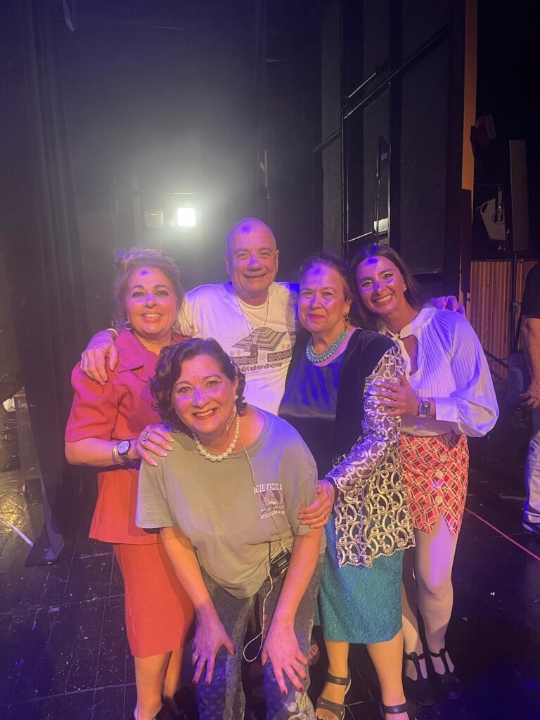 לואיס הר הגיע למחזמר "איך להצליח בעסקים מבלי להתאמץ" (2024) והצטלם מאחורי הקלעים. מצד שמאל אנני עם החברים מהתיאטרון שחיכו לשחרורו מהשבי | צילום: פרטי
