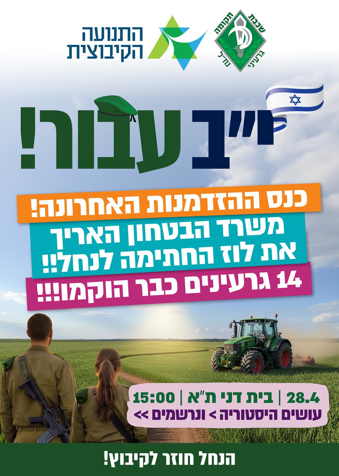 יב'ניקים, הזדמנות אחרונה להצטרף ל- 300 חבר'ה ב- 14 גרעינים שבאים אתנו לשנת שירות בגרעיני הנח'ל לישובי הגבולות!!! 🚜