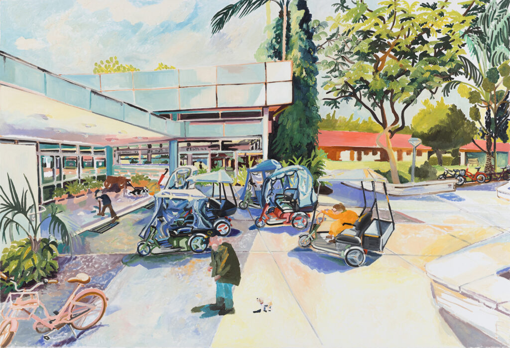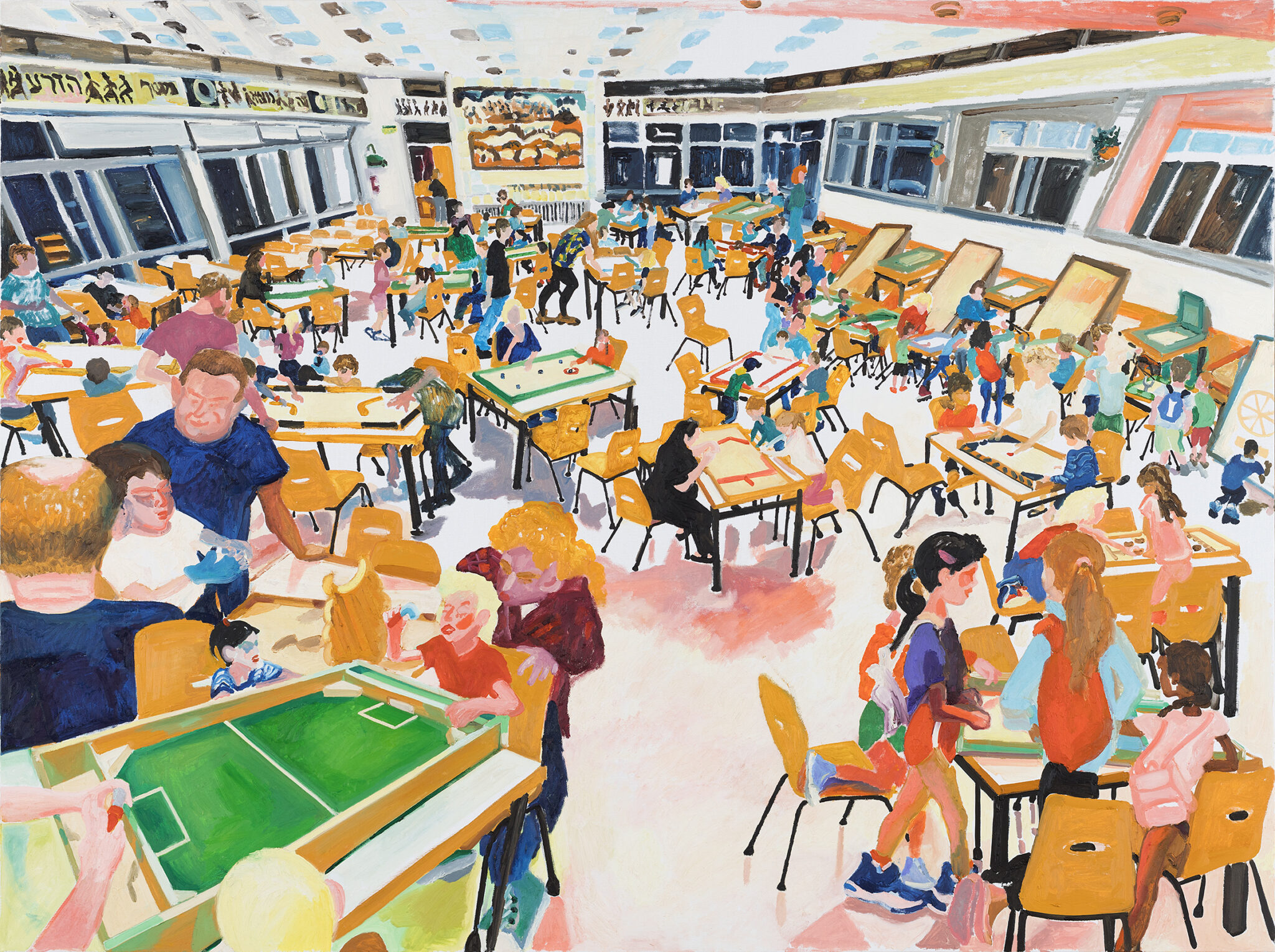 מאז הפכה אדרי (43) לחברת רמת יוחנן מן המניין, ילדה את בנה השלישי והמשיכה לצייר. חמש שנות עבודה הניבו תוצאה מרהיבה: ציורי ענק נפלאים, מלאי חיות והומור בצבעי שמן, של סצינות וריטואלים קיבוציים מוכרים היטב. כל כך מוכרים, שחלקם, על אף היותם ייחודיים למדי ברמת המאקרו, נתפסו כבנאליים ולא זכו לתיעוד ארכיוני מקומי. למשל חדר הלחם שדי נעלם מהנוף, ושאדרי נתקלה בו בזמן הווה בברעם, ומתארת אותו מילולית בפיוטיות של מאיר שלו. או הטקס הקבוע של התייצבות הוותיקים, רכובים על קלנועיות, בחדר האוכל ב-11:30 פונקט, חדר האוכל שהופך בחגים למשחקייה לילדים, מינגלינג ליד ברזי המים הקרים והסודה, ועוד ועוד. אנרגיות הדחיפות של האומנית מורגשות היטב. "הייתי במין בולמוס של בנייה של הקיבוץ מחדש. חלק ציירתי ישר על הבד, חלק הייתי רושמת. יש לי רשימה של עוד 50 נושאים". כמי שנולדה בקיבוץ אך נעקרה ממנו בגיל חמש (על כך בהמשך) וחיה בלונדון ובתל אביב, היא הגיעה בחזרה למכורתה וגילתה שהרבה דברים השתנו, גם בוויזואליה. המבט התחדד גם משום ששבה לקיבוץ כאם. "התחלתי לחוות מחדש את הילדות שלי דרך הילדים", היא אומרת.