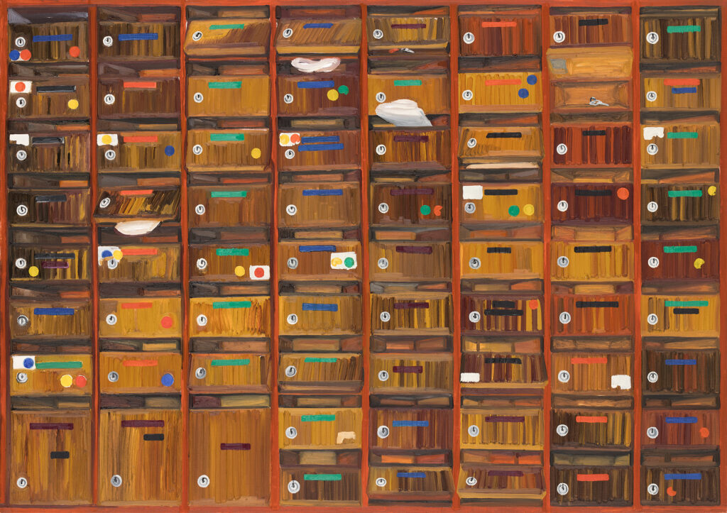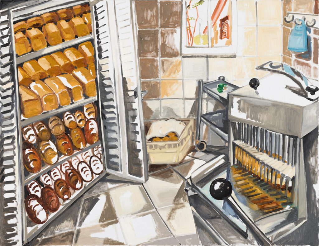 "כשהגעתי אמרו לי שזה לא אותו הקיבוץ וזה היה מוזר כי המדרכות והבניינים לא השתנו. הכוונה היתה לנאיביות ודרך הציורים ניסיתי לחזור לשם", היא מסבירה. "התחלתי לעשות רה-קונסטרוקציה לקיבוץ. הבנות שלי התחילו להסתכל ולהגיד שזה (הציורים, ע"ט) דומה אבל לא אותו דבר, למשל תאי הדואר המקסימים שהיו מעץ, ועכשיו הם מברזל ונמצאים בחוץ. גם הטקסים האלו, של להיכנס לחדר האוכל שהיה עולם בפני עצמו, השתנו וזה ניסיון לשחזר את הבועה הזאת, העולם שבנינו אז. למשל הלובי בחדר האוכל שהיו מציגים בו את החנוכיות המיוחדות".