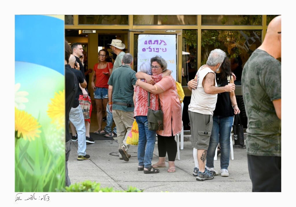 היה שם שולחן גדול שבו אנשים חיפשו קרובים וחברים וכל הזמן הגיעו עוד אנשים. היו המון חיבוקים והמון בכי