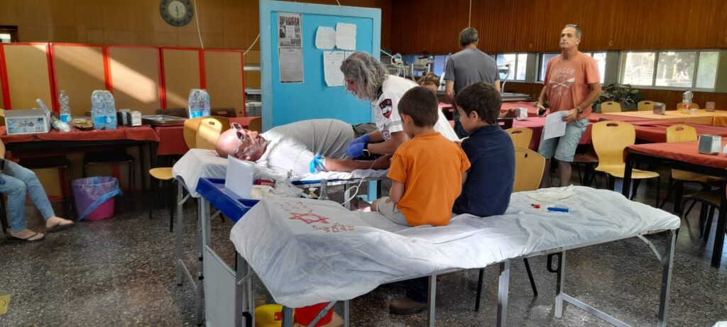 מבצע התרמת דם בקיבוץ נען במלחמת "חרבות ברזל". באדיבות הקיבוץ