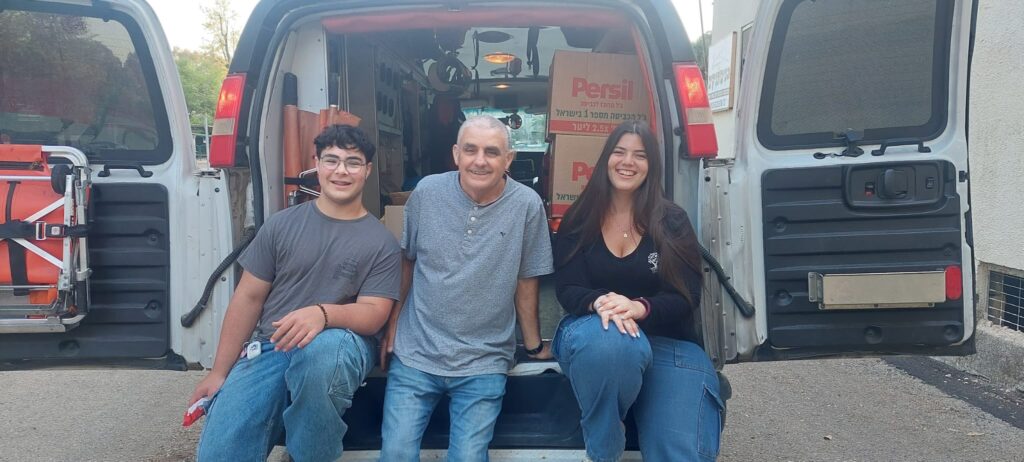 מתנדבי מד"א באמבולנס עם ארגזי מזון שנתרמו ע"י חברי נען. באדיבות הקיבוץ