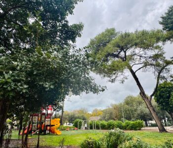 נוטעים 50-40 עצים בכל שנה, מתגברים על השרקיות ועל הקרינה מאבני הבזלת הרותחות בקיץ, מתכננים אזורים מוצלים ומגוונים את העצים....