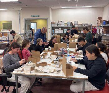 קטיף מנערת מטע חרוב דפנה. צילום: דרך החרוב